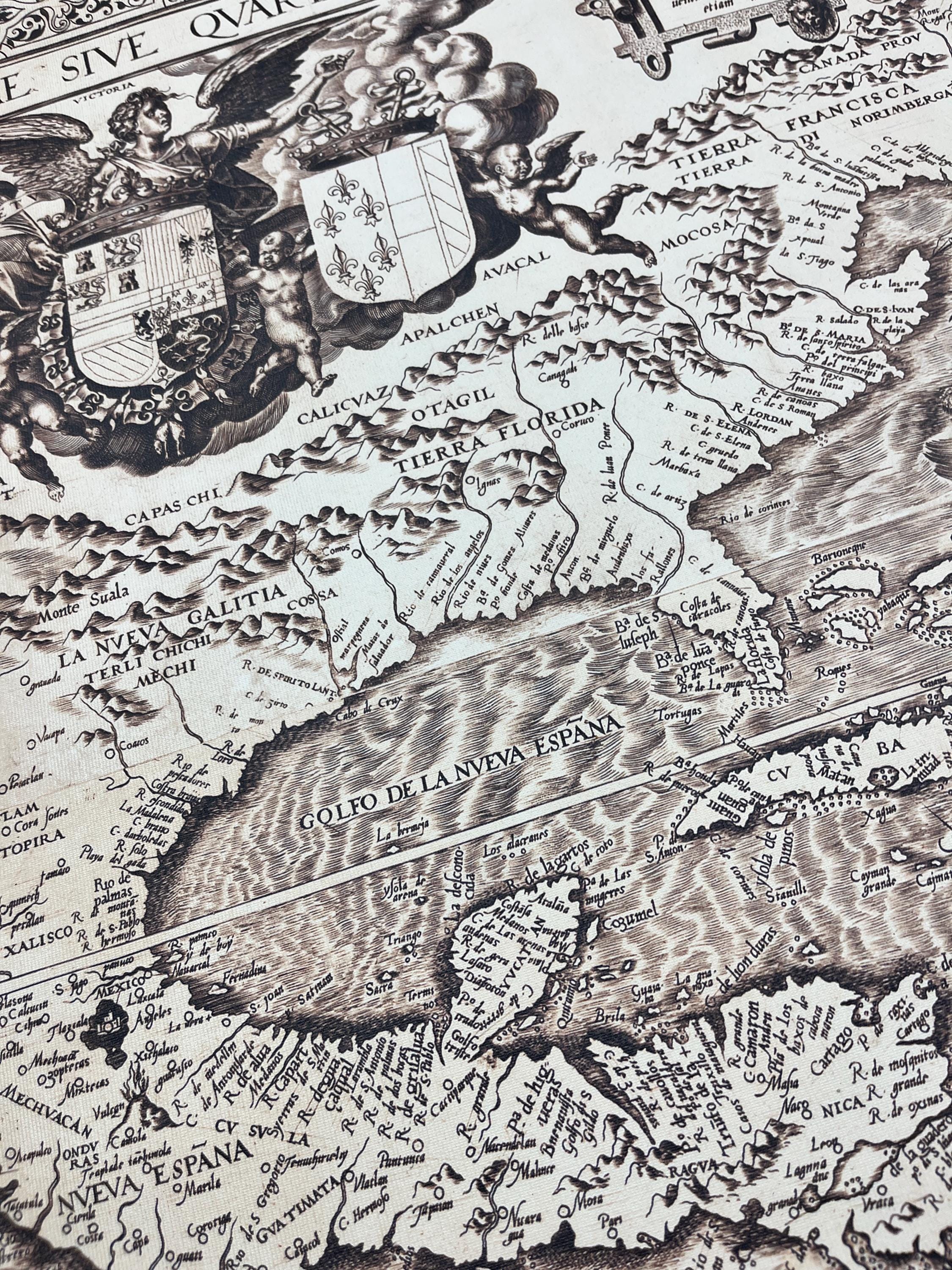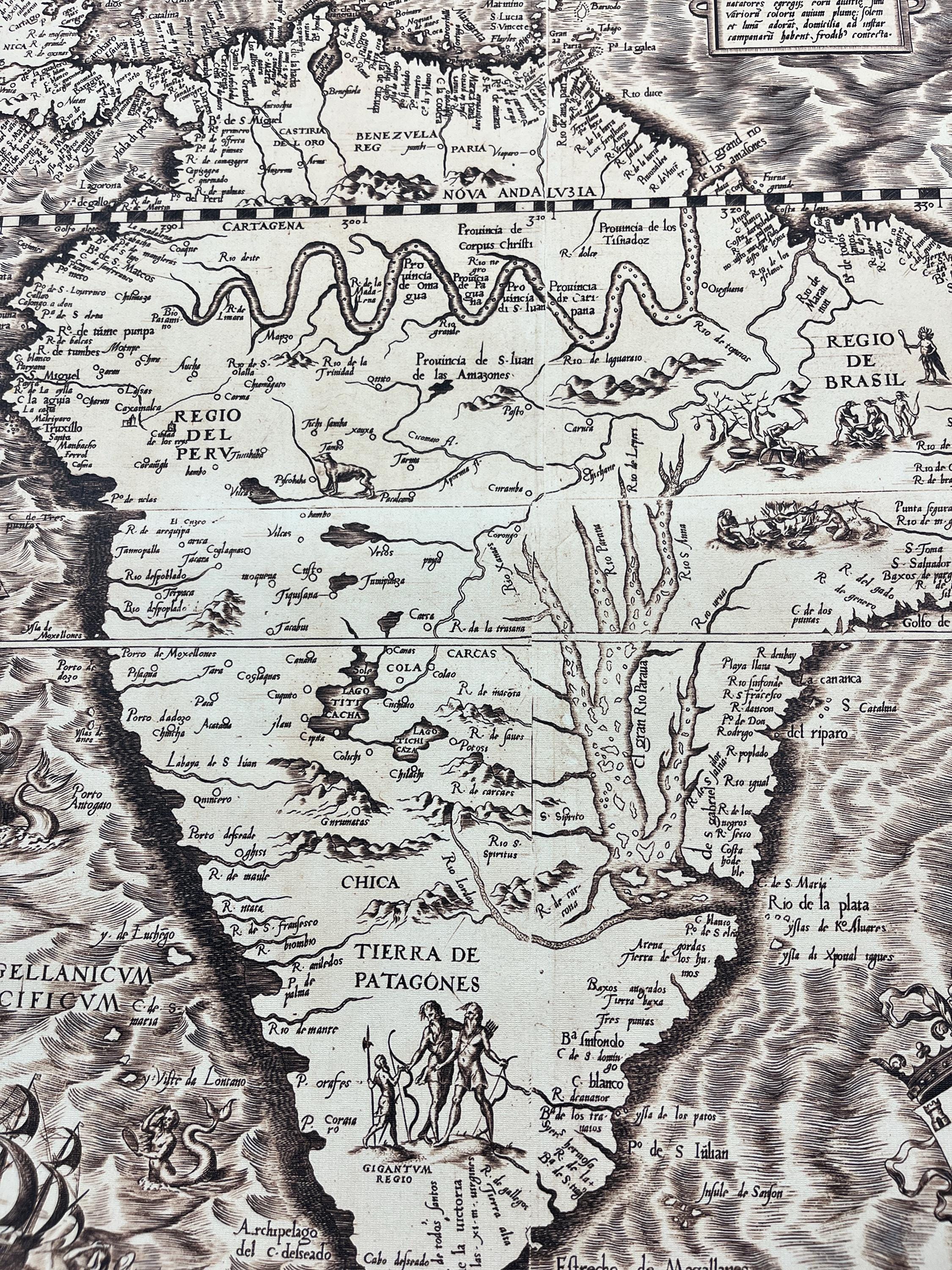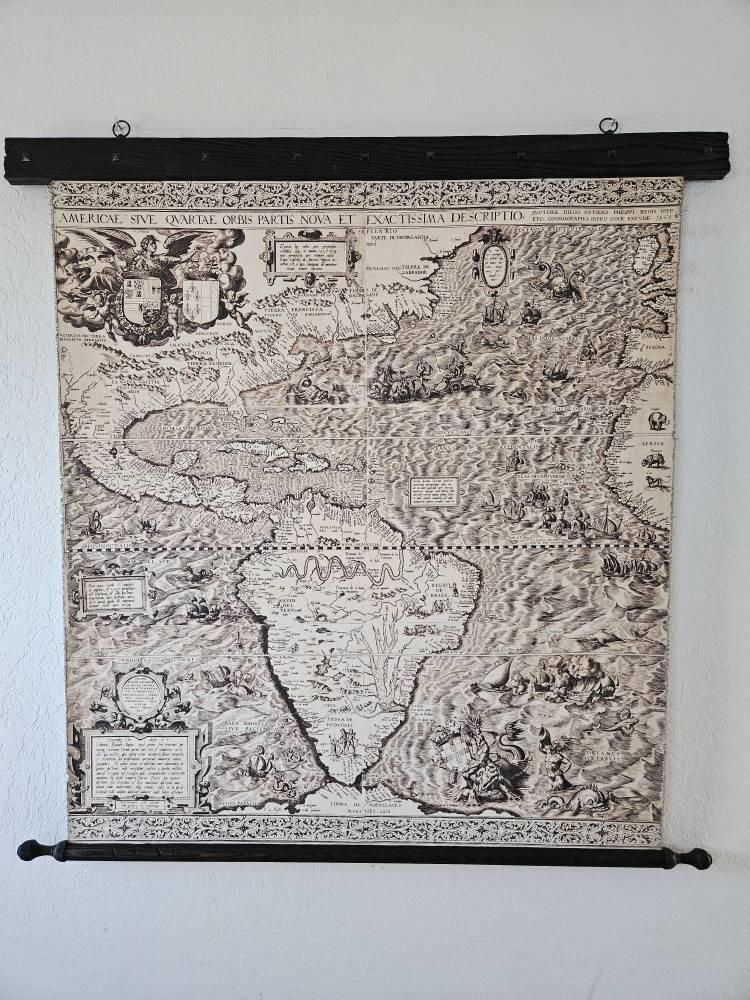Beautiful large wall map of America in 1562. Amazing illustrations.