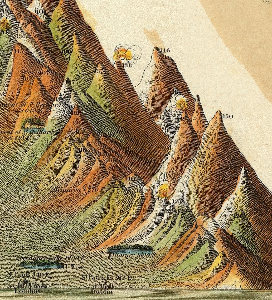 - At the map bottom is sea level with heights of Pyramids, Gibraltar rock, Niagara falls, Rome, London, Dublin, island of St.Helena...