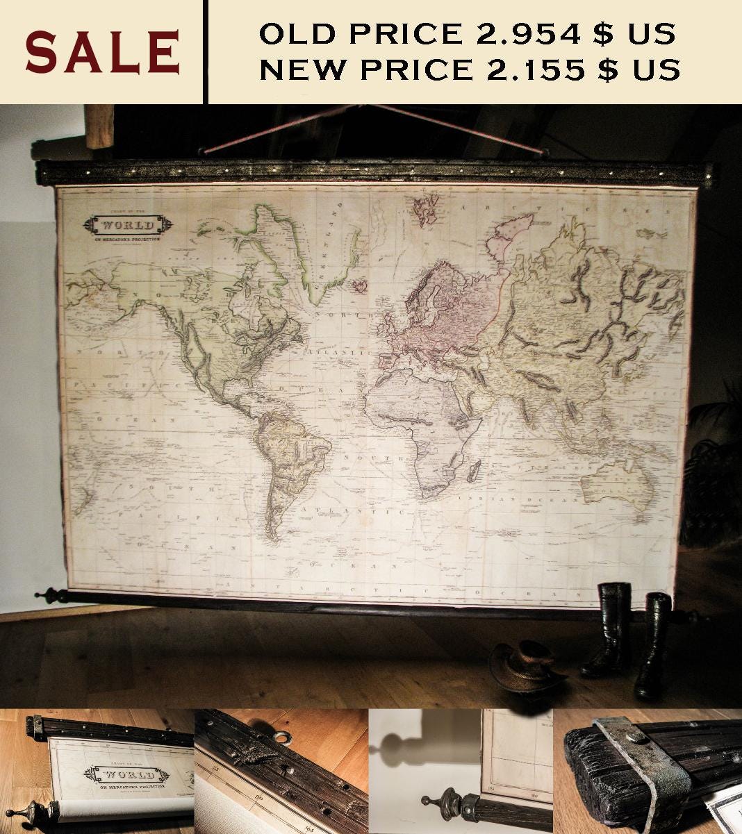This majestic map is on sale as of now! This king's, huge and magnificent victorian world map is available for purchase and ready to hang on your wall, available in size 111'' x 74'' // 280cm x 190cm in dark brown wood.